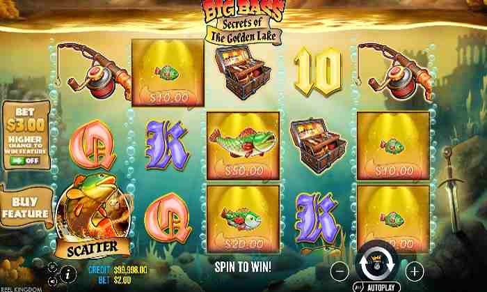 Slot Big Bass Secrets of the Golden Lake został zbudowany w układzie 5×3, czyli pięć bębnów i trzy rzędy symboli. Linie wypłat są stałe i jest ich kilkanaście. To standard, ale wielu graczy lubi właśnie taką przejrzystość.