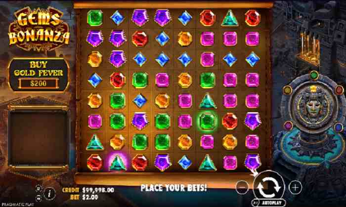 W Gems Bonanza nie znajdziemy tradycyjnych linii wygrywających. Zamiast nich pojawia się wspomniany system klastrów. Kiedy co najmniej pięć identycznych kamieni styka się ze sobą, gracz otrzymuje nagrodę.